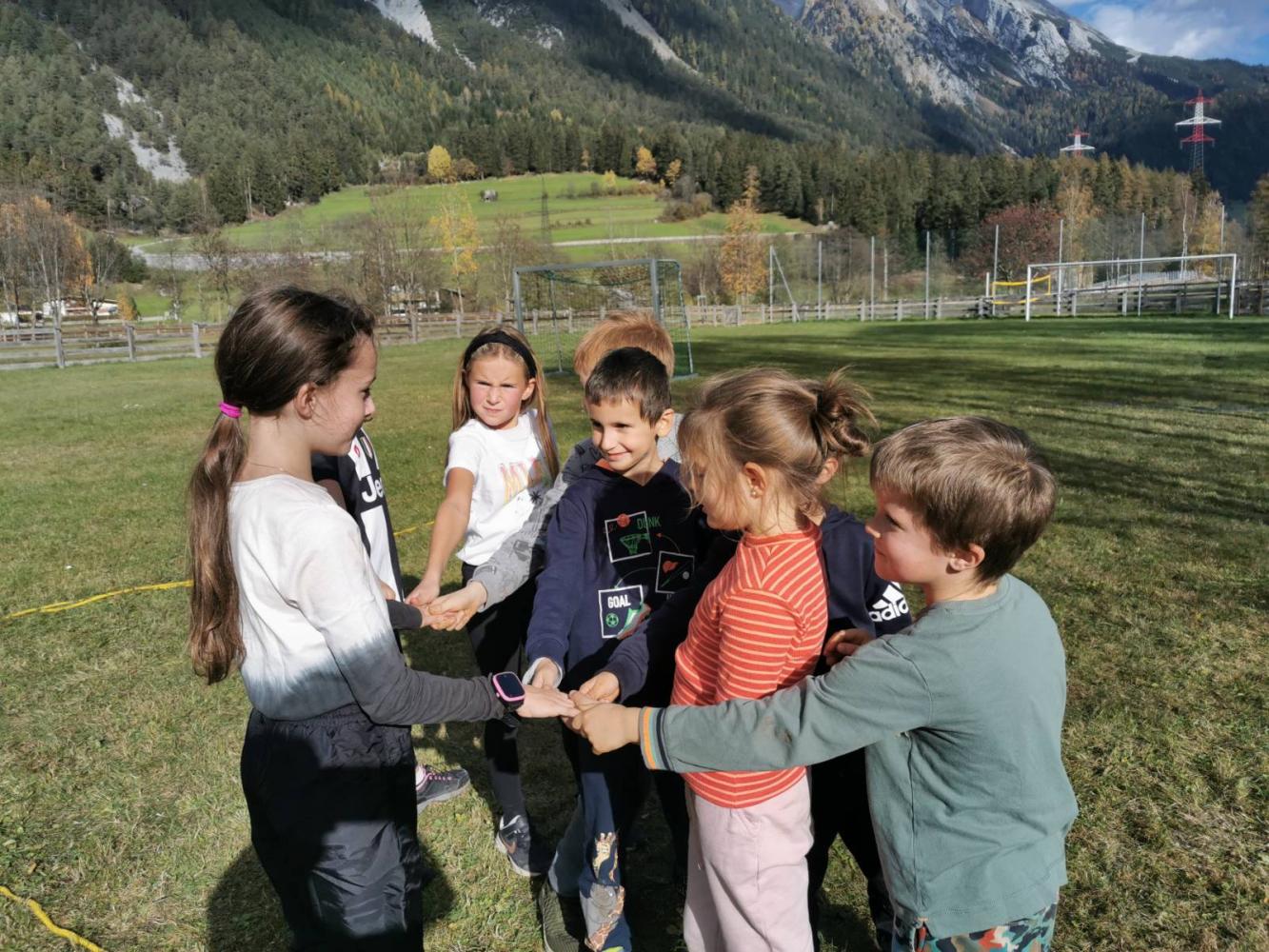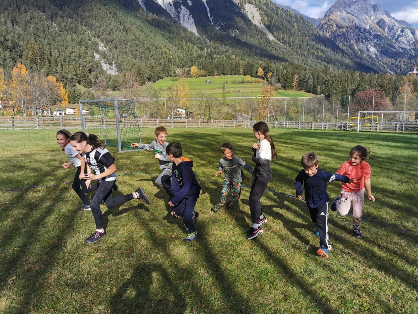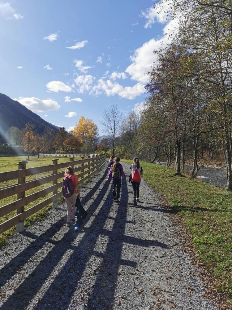 Heuer hatten wir an fast allen Dienstagen schönes Wetter und gestalteten daher unseren Turnunterricht im Freien. Wir marschierten zum Spielplatz nach Flirsch oder zum Schnanner Fußballplatz. Dabei sammelten wir unter anderem wunderschöne Schätze, wie Kastanien und Blätter zum Basteln und natürlich viele bunte Eindrücke des "goldenen Oktobers".