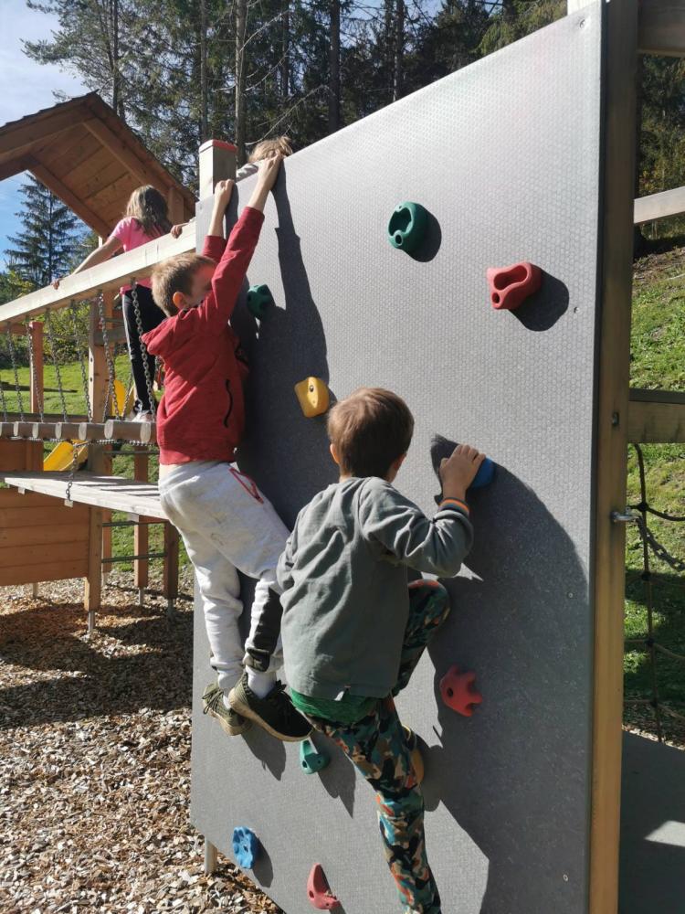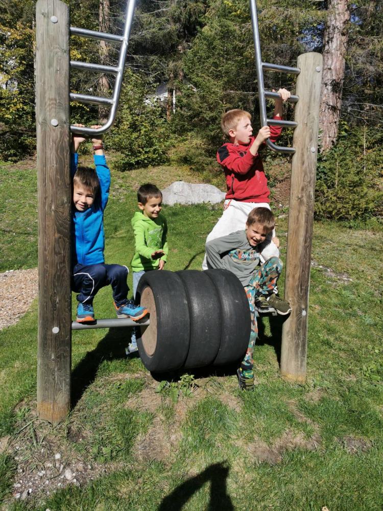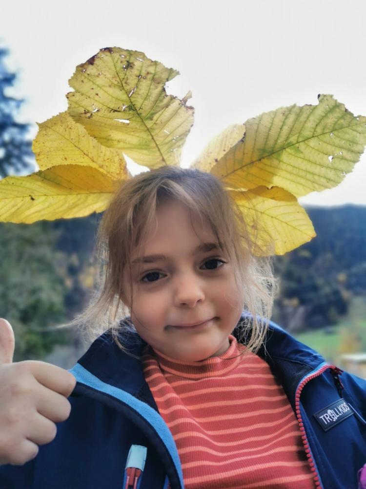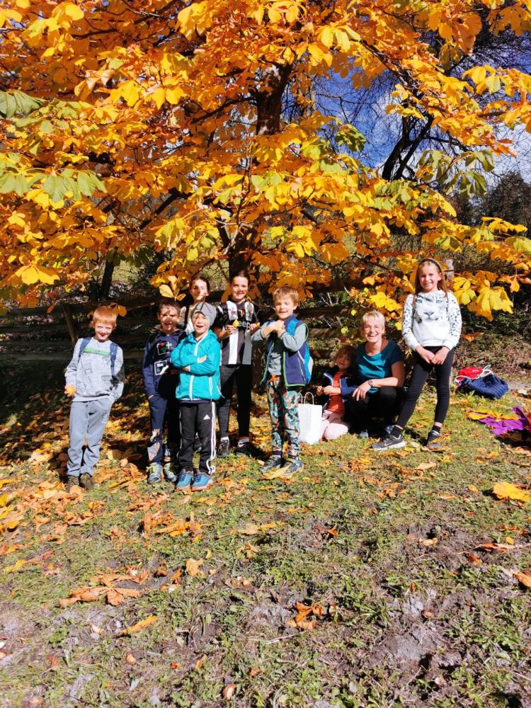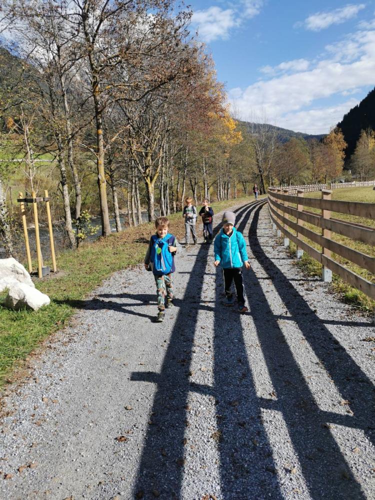 Heuer hatten wir an fast allen Dienstagen schönes Wetter und gestalteten daher unseren Turnunterricht im Freien. Wir marschierten zum Spielplatz nach Flirsch oder zum Schnanner Fußballplatz. Dabei sammelten wir unter anderem wunderschöne Schätze, wie Kastanien und Blätter zum Basteln und natürlich viele bunte Eindrücke des "goldenen Oktobers".