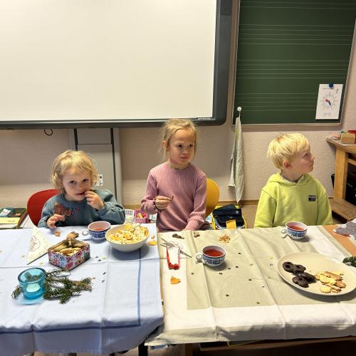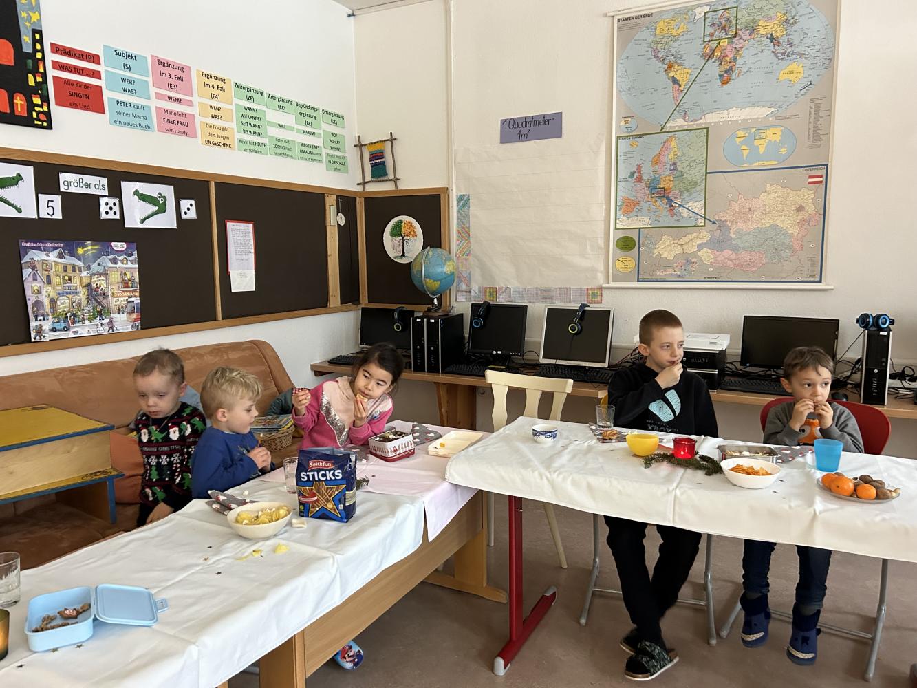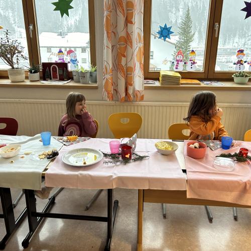 Am Tag vor den Weihnachtsferien haben wir gemeinsam mit den Kindern aus dem Kindergarten im Pavillion „angeklöpfelt“ und so auf das bevorstehende Weihnachtsfest eingestimmt.