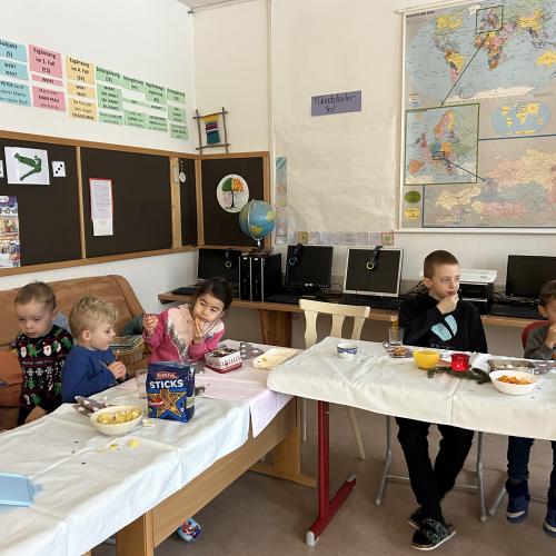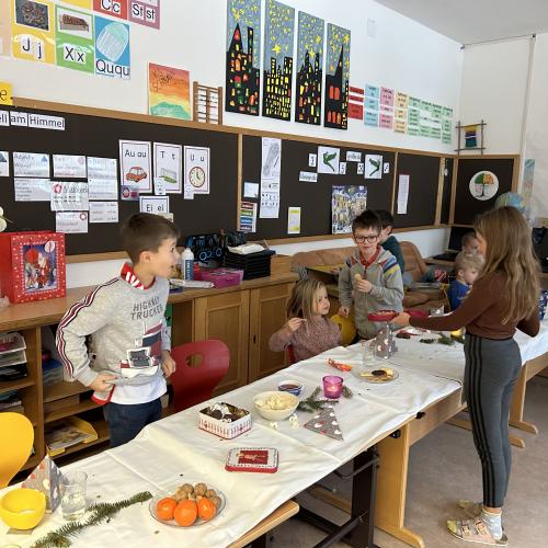 Im Anschluss daran genossen wir bei einer gemeinsamen Weihnachtsfeier mit leckerem Essen, Süßigkeiten und Spielen den letzten Schultag.