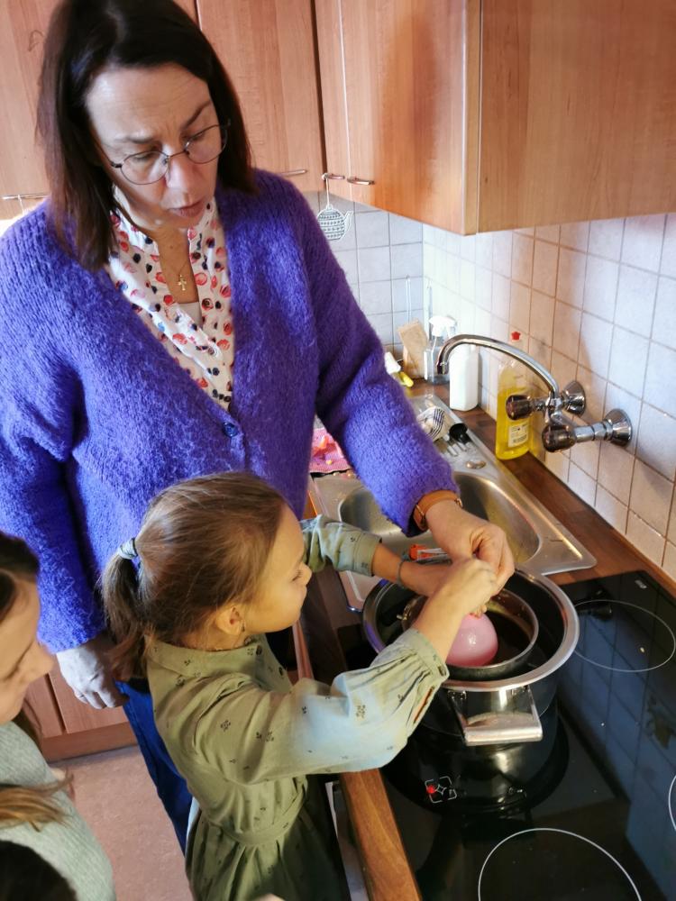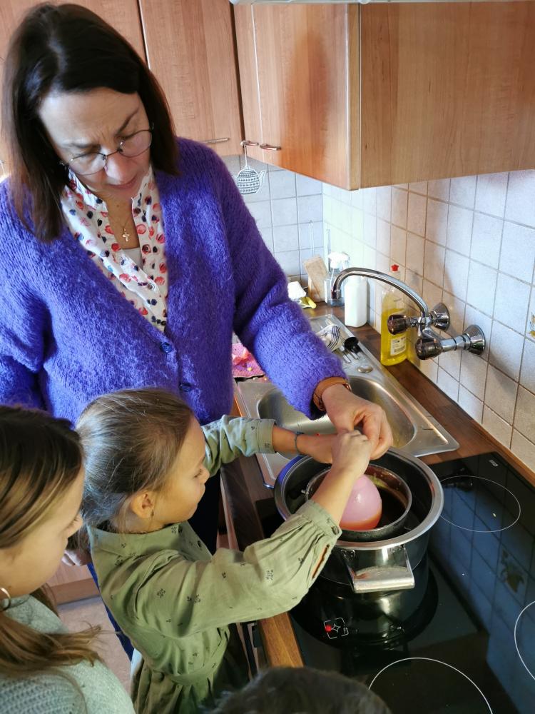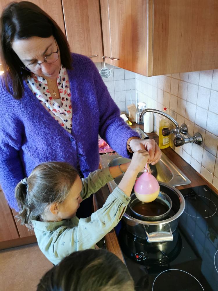 Mit Religionslehrerin Christiane fabrizierten die Kinder in Religion Bienenwachs-Windlichter - eine ganz besondere Technik!