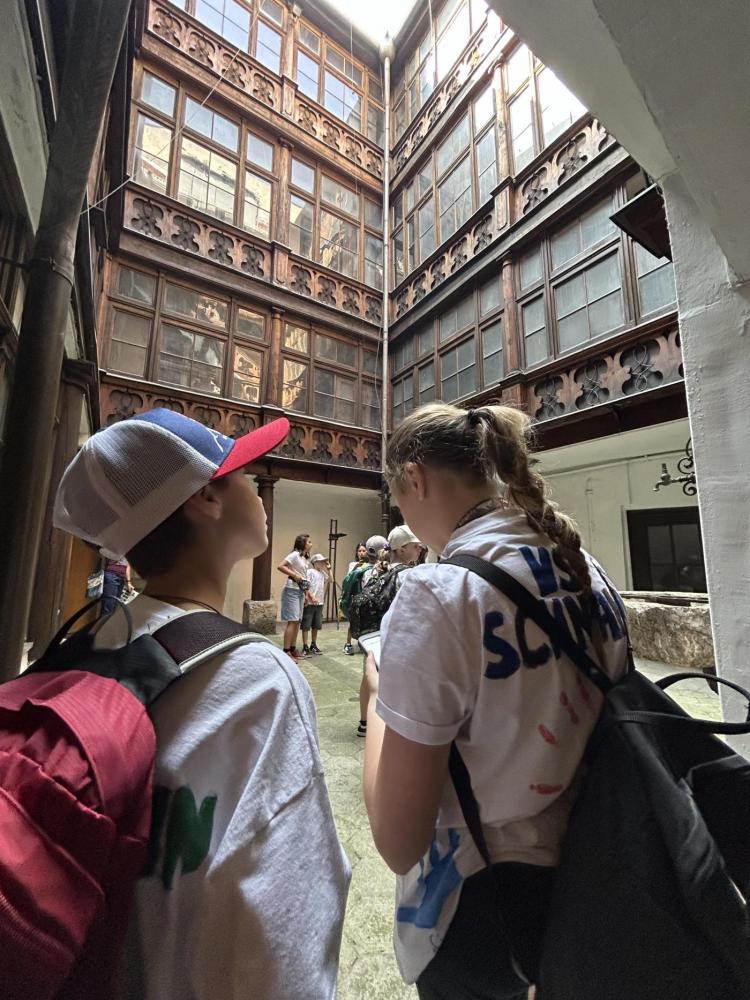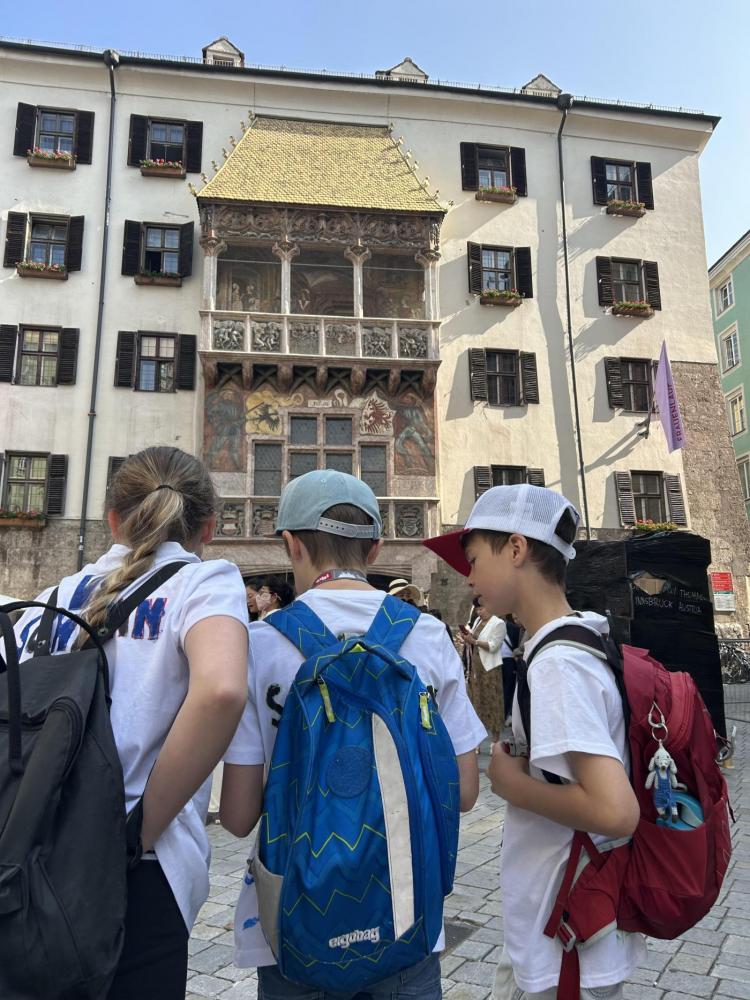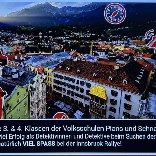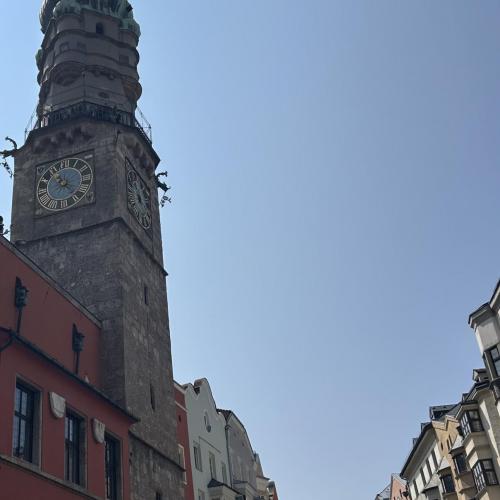 In Innsbruck angekommen, starteten wir die Innsbruck-Rallye im Medienzentrum. Ausgestattet mit Tablets, lösten wir Rätsel in der Altstadt, um die verlorenen Schindeln des Goldenen Dachls zu finden. Trotz kniffliger Aufgaben meisterten wir die Rallye hervorragend und lernten viel über die Stadtgeschichte.