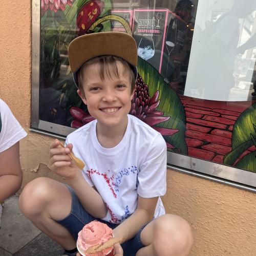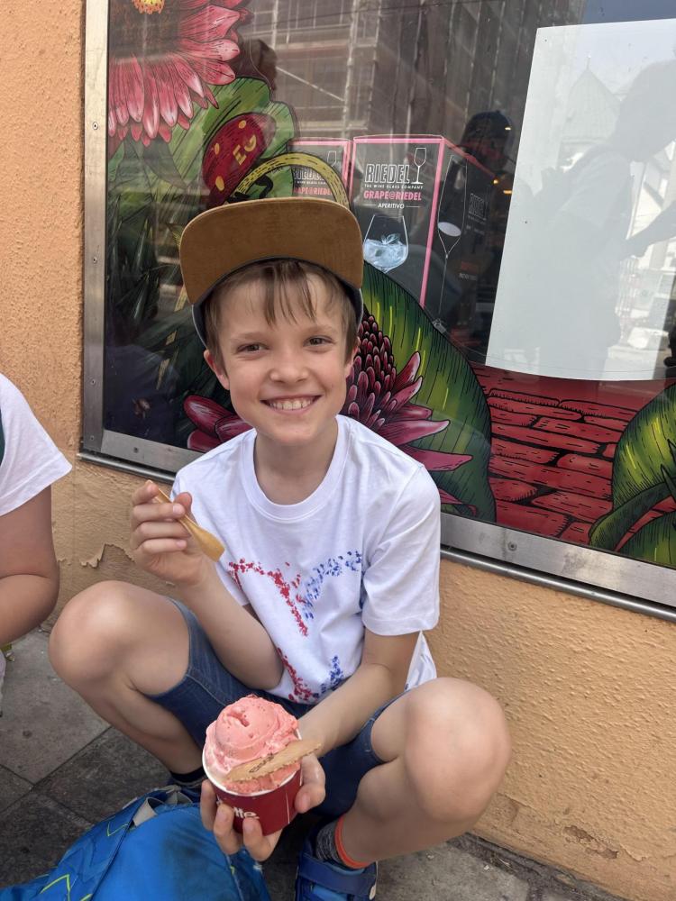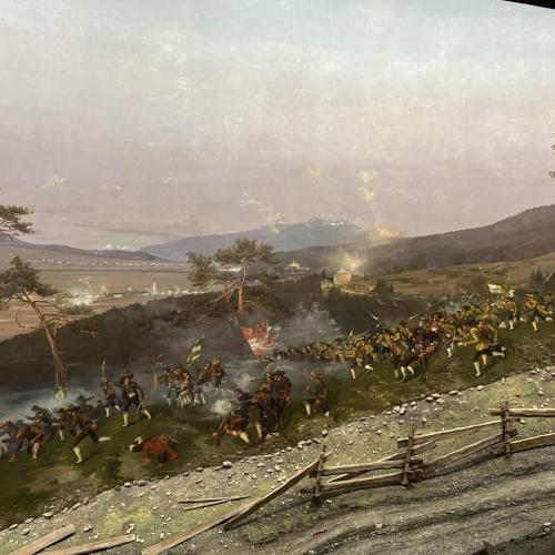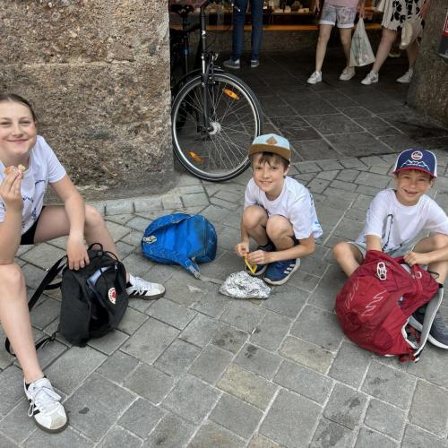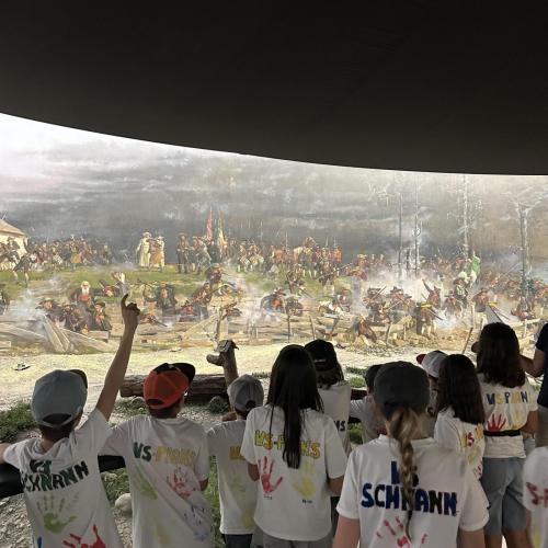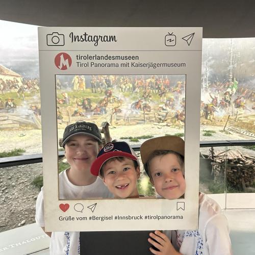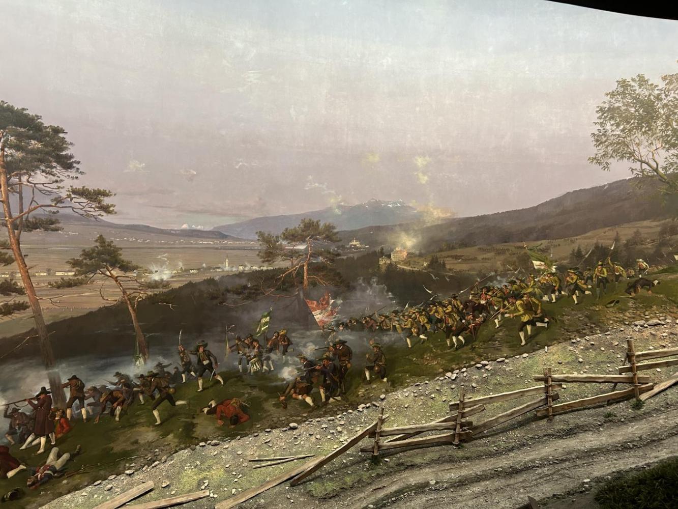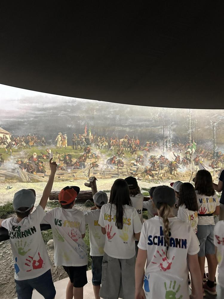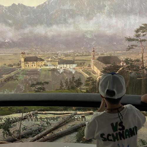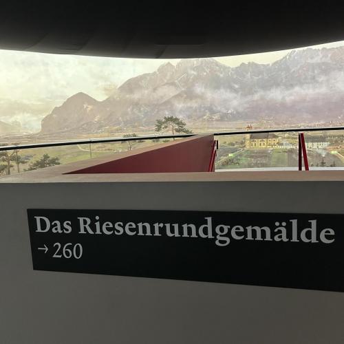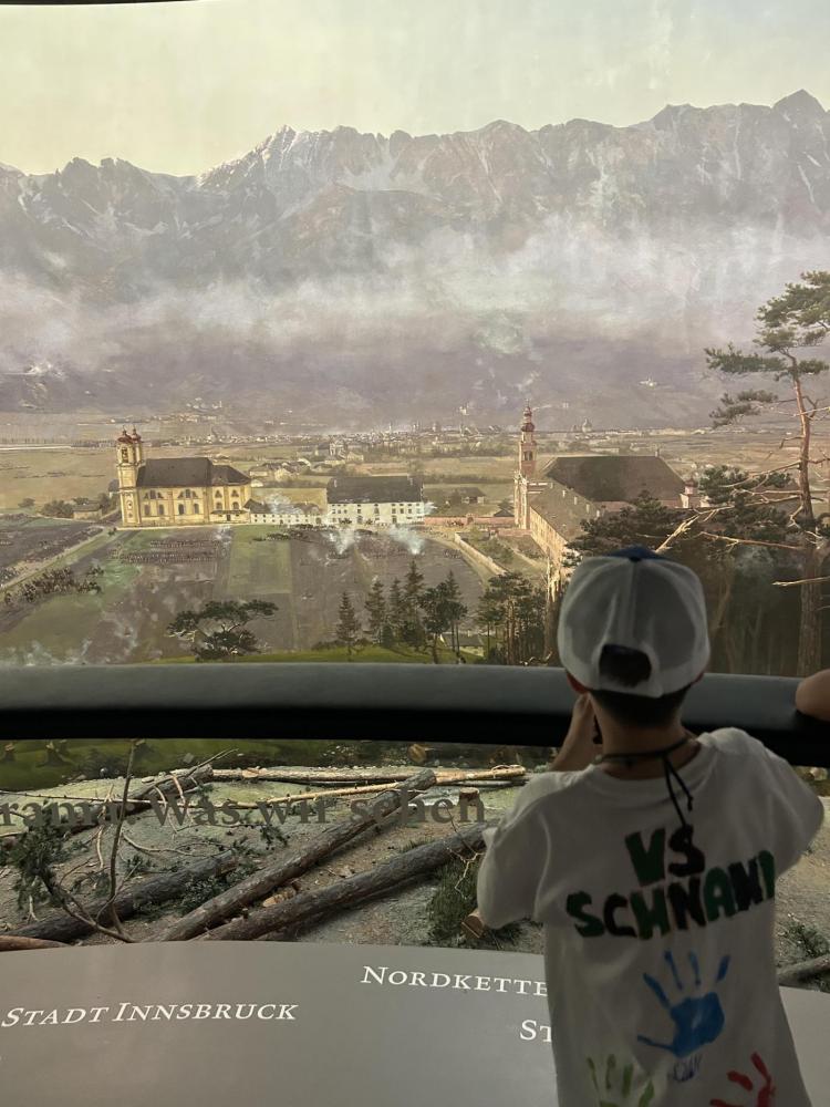Bei strahlendem Sonnenschein gönnten wir uns anschließend ein Eis, bevor wir die letzte Station ansteuerten: das Riesenrundgemälde am Bergisel. In einer spannenden Führung erfuhren wir vieles über das Gemälde und seinen Künstler und konnten das Kunstwerk aus nächster Nähe betrachten.