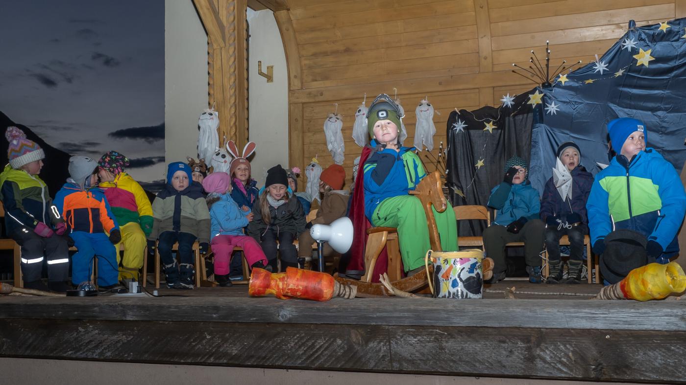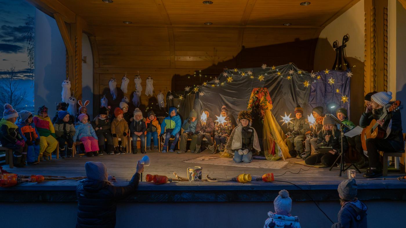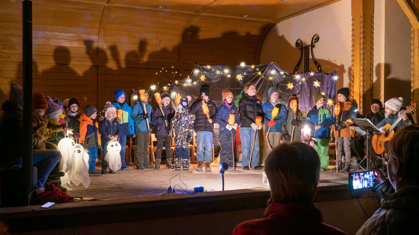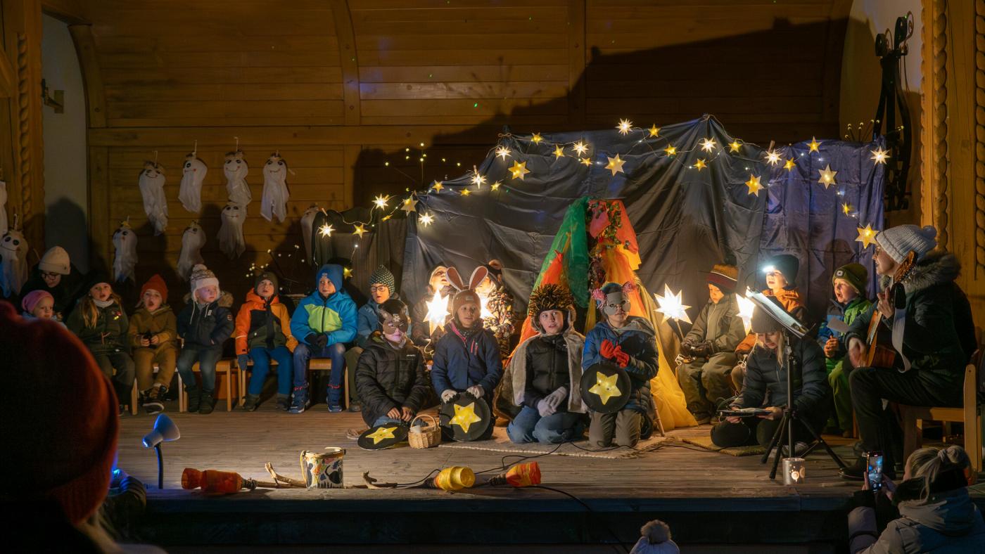 Zu Beginn wurde die Legende des Hl. Martin pantomimisch dargestellt, bevor das bezaubernde Minimusical „Der kleine Igel und das Sternenfest“ , aus der Feder von Kindergartenleiterin Claudia Veiter, aufgeführt wurde. Der kleine Igel liebte das Leuchten der Sterne. Als er jedoch mitten im Winter erwachte und keine Sterne leuchteten, fühlte er sich im Dunkeln einsam. Doch da kamen seine Freunde der Hase, die Maus und das Eichhörnchen. Sie brachten Lichter und feierten ein ein fröhliches Sternenfest – eine Hommage an die Freundschaft.