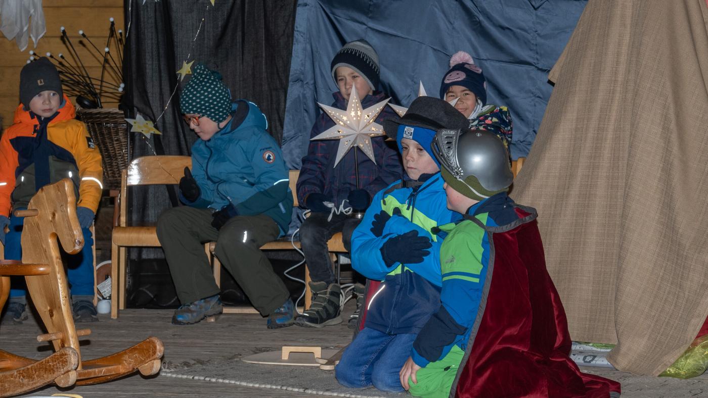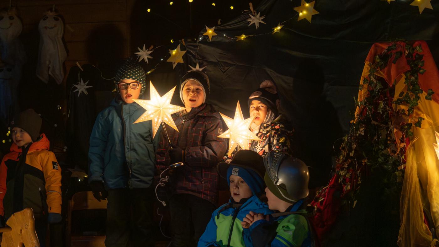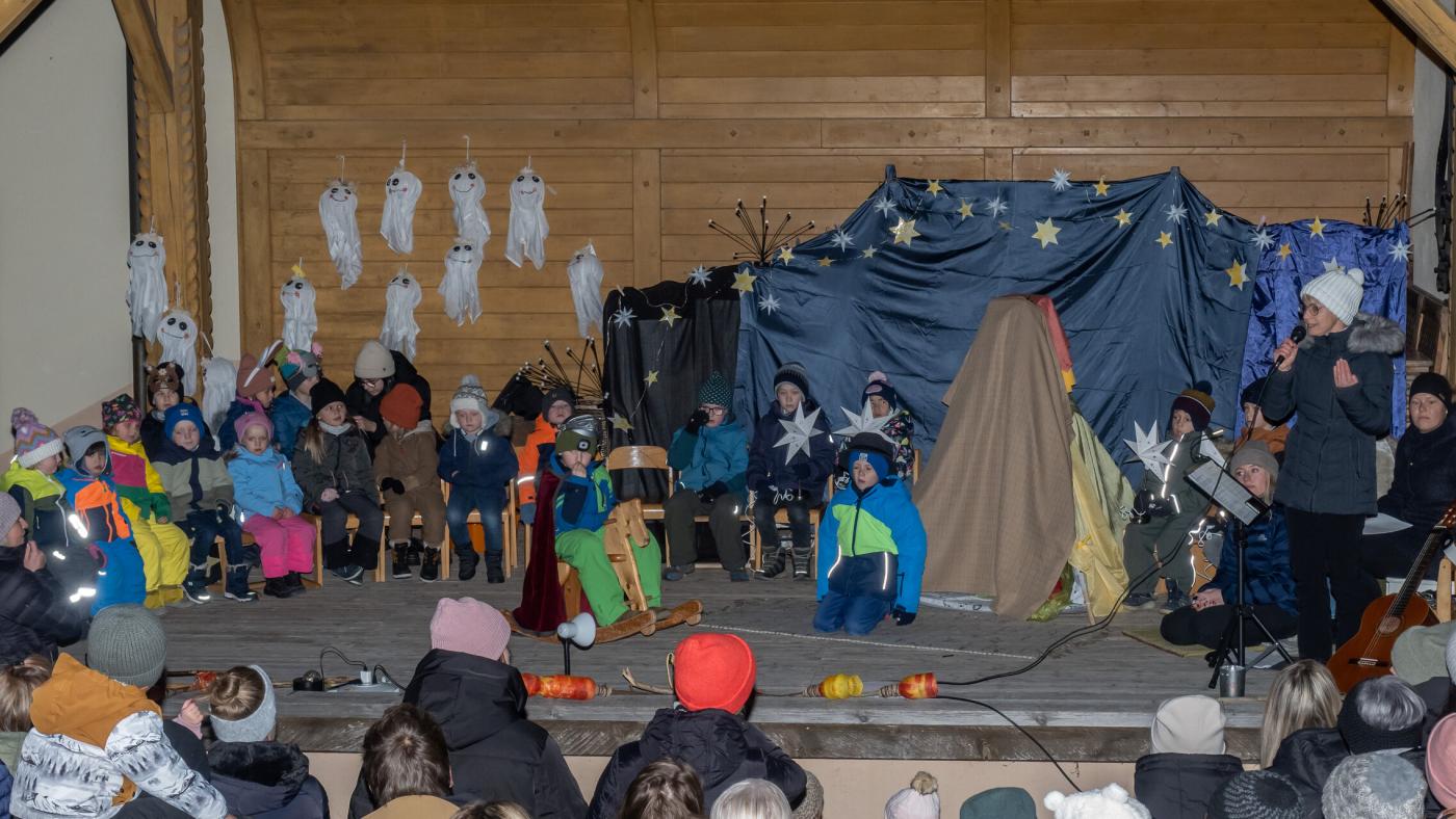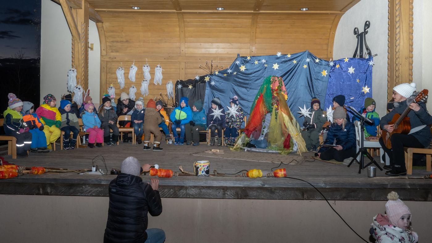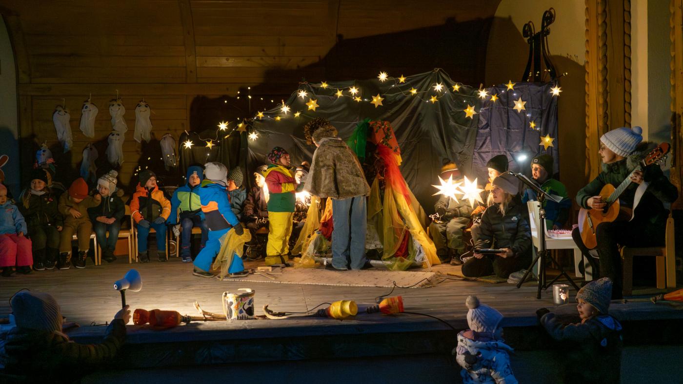 Zu Beginn wurde die Legende des Hl. Martin pantomimisch dargestellt, bevor das bezaubernde Minimusical „Der kleine Igel und das Sternenfest“ , aus der Feder von Kindergartenleiterin Claudia Veiter, aufgeführt wurde. Der kleine Igel liebte das Leuchten der Sterne. Als er jedoch mitten im Winter erwachte und keine Sterne leuchteten, fühlte er sich im Dunkeln einsam. Doch da kamen seine Freunde der Hase, die Maus und das Eichhörnchen. Sie brachten Lichter und feierten ein ein fröhliches Sternenfest – eine Hommage an die Freundschaft.