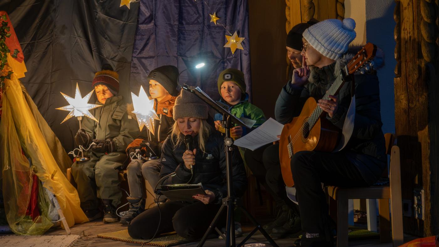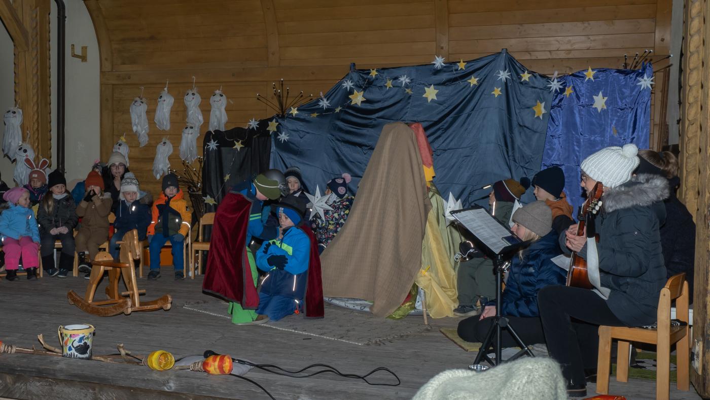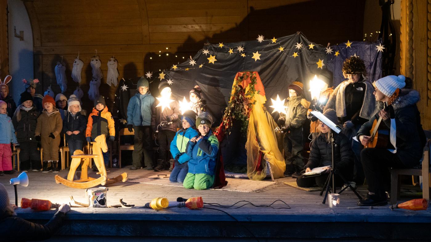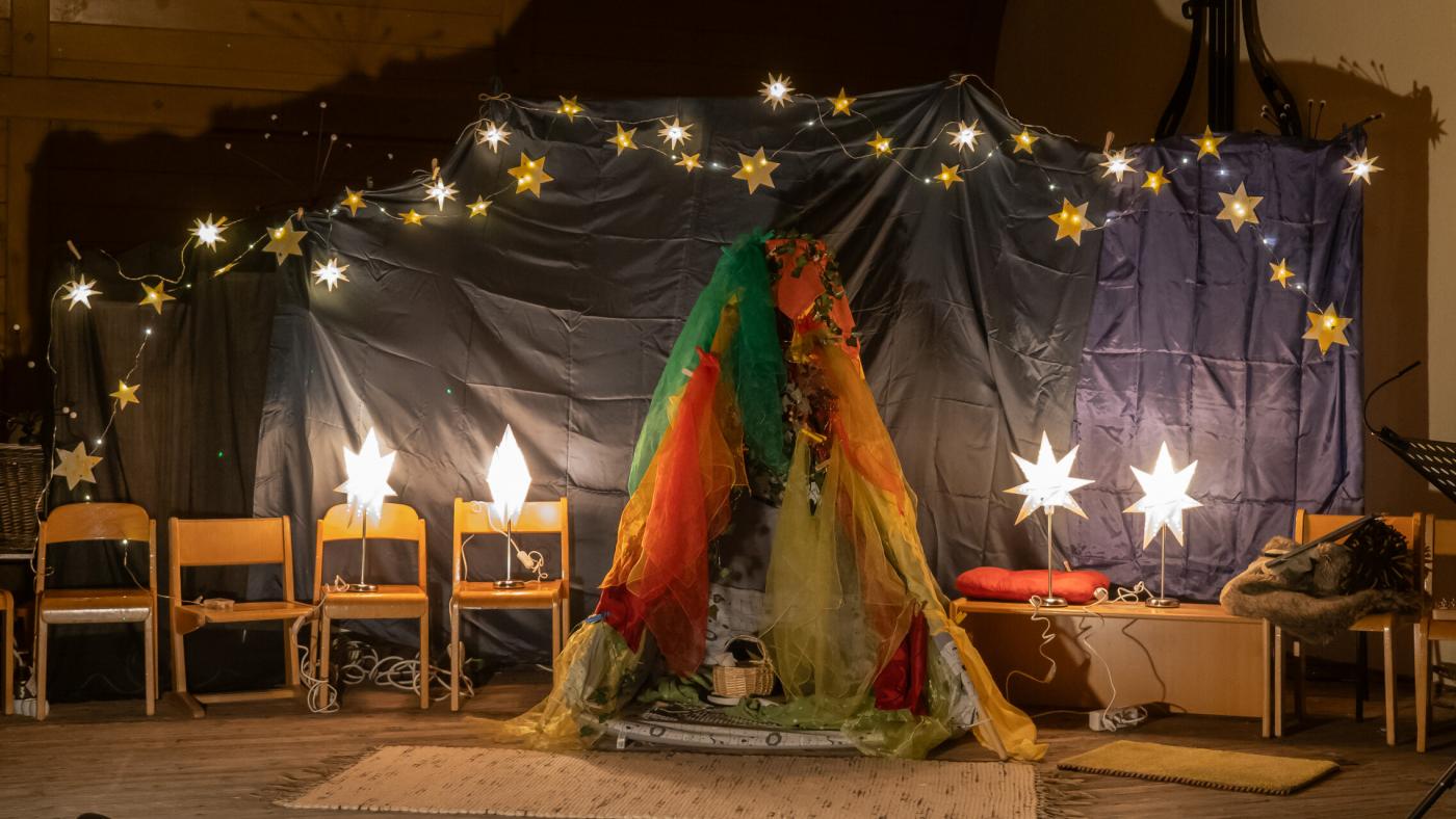 Zu Beginn wurde die Legende des Hl. Martin pantomimisch dargestellt, bevor das bezaubernde Minimusical „Der kleine Igel und das Sternenfest“ , aus der Feder von Kindergartenleiterin Claudia Veiter, aufgeführt wurde. Der kleine Igel liebte das Leuchten der Sterne. Als er jedoch mitten im Winter erwachte und keine Sterne leuchteten, fühlte er sich im Dunkeln einsam. Doch da kamen seine Freunde der Hase, die Maus und das Eichhörnchen. Sie brachten Lichter und feierten ein ein fröhliches Sternenfest – eine Hommage an die Freundschaft.
