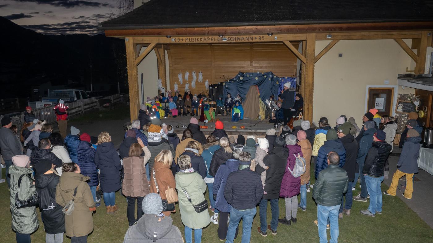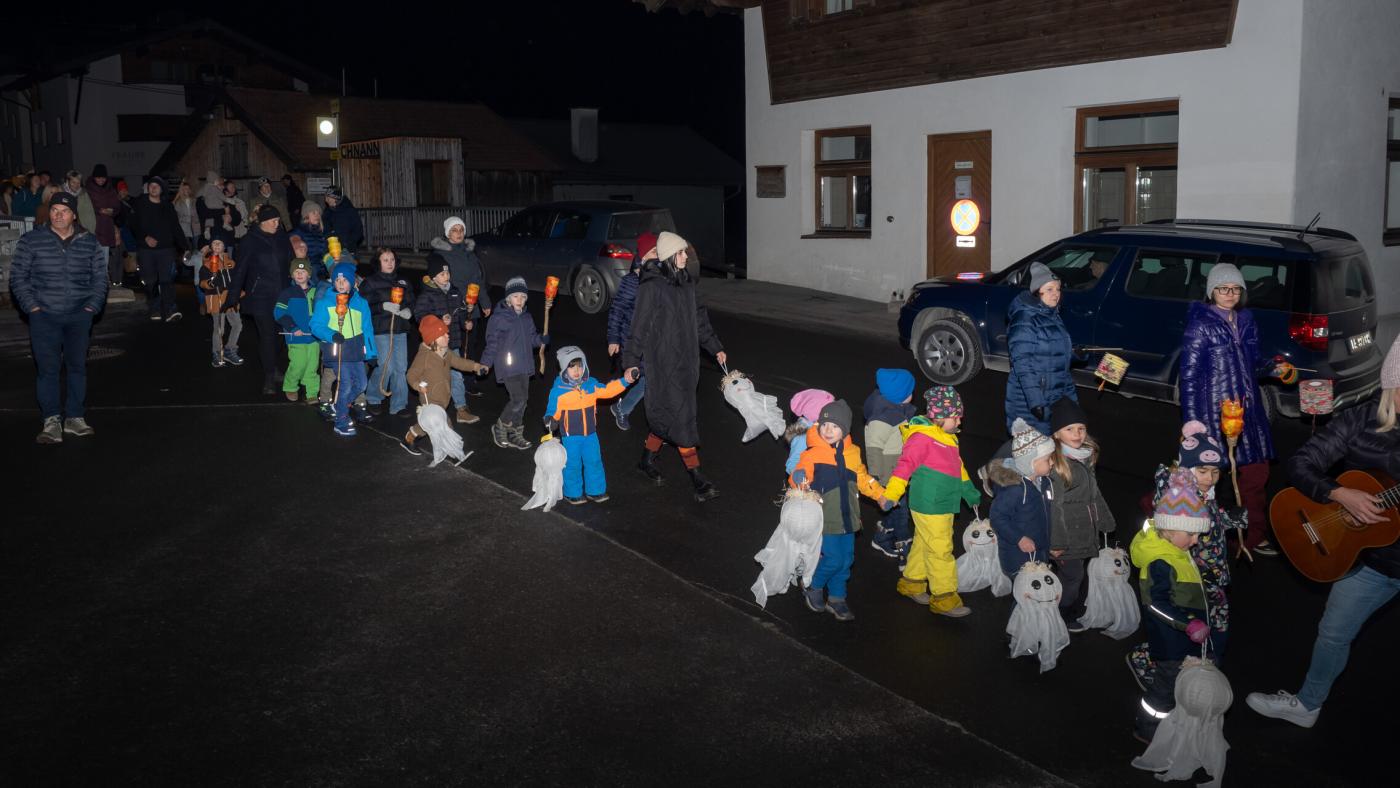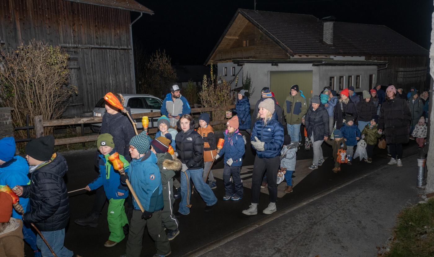 Anschließend zogen die Kinder mit ihren selbstgebastelten Laternen durch die Nacht. Im Schulhof teilten sie Brot, gespendet von der Bäckerei Ruetz, und genossen Tee, vorbereitet von Elternvertreterinnen. Ein Fest, das Gemeinschaft und Teilen in den Vordergrund stellte!