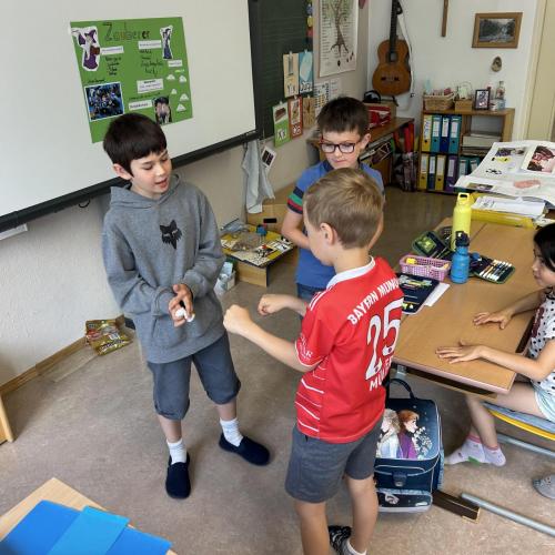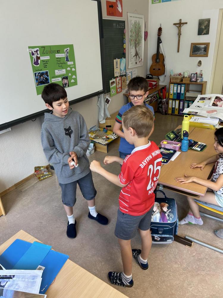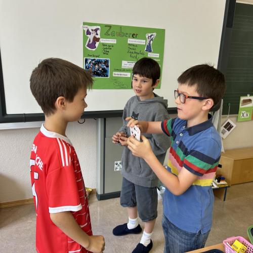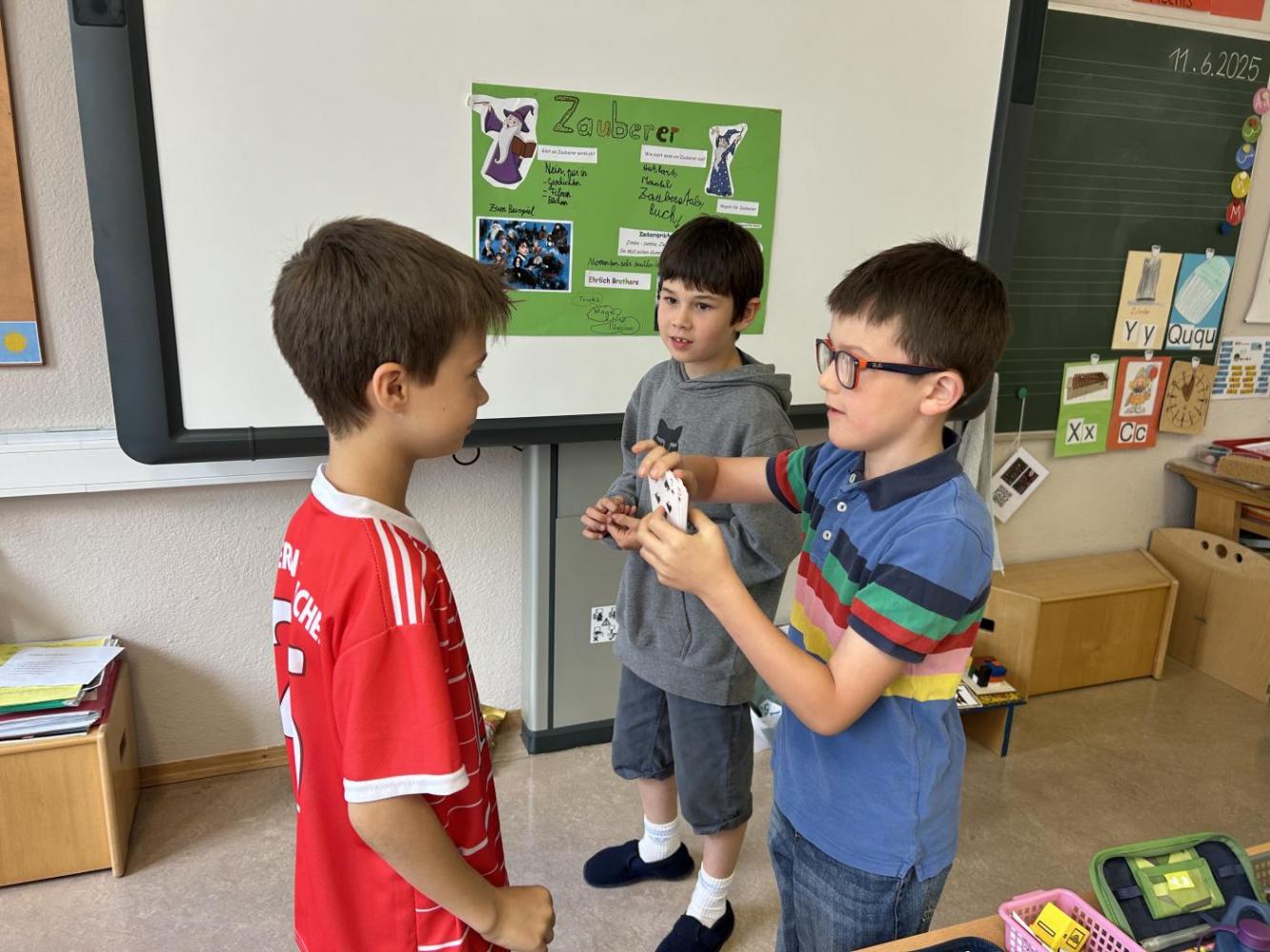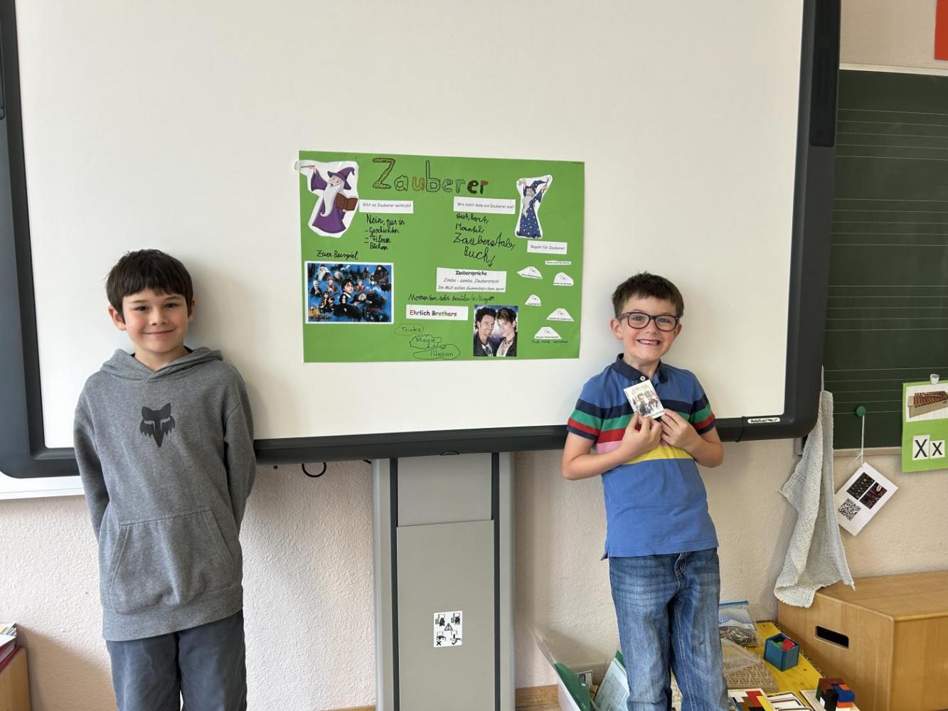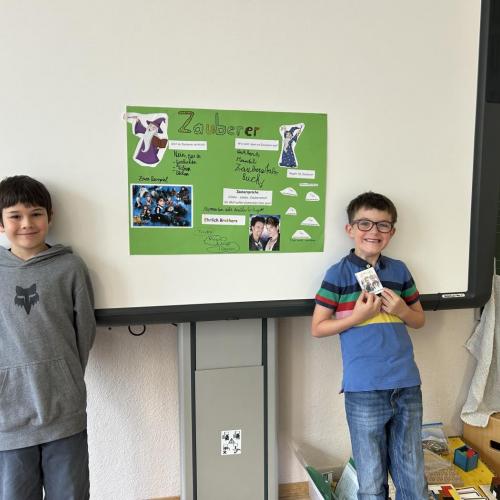 Niklas und Paul entführten uns in die Welt der Zauberer: Neben interessanten Fakten und Zauberregeln begeisterten sie uns mit echten Zaubertricks – inklusive herbeigezauberter Gummibärchen!