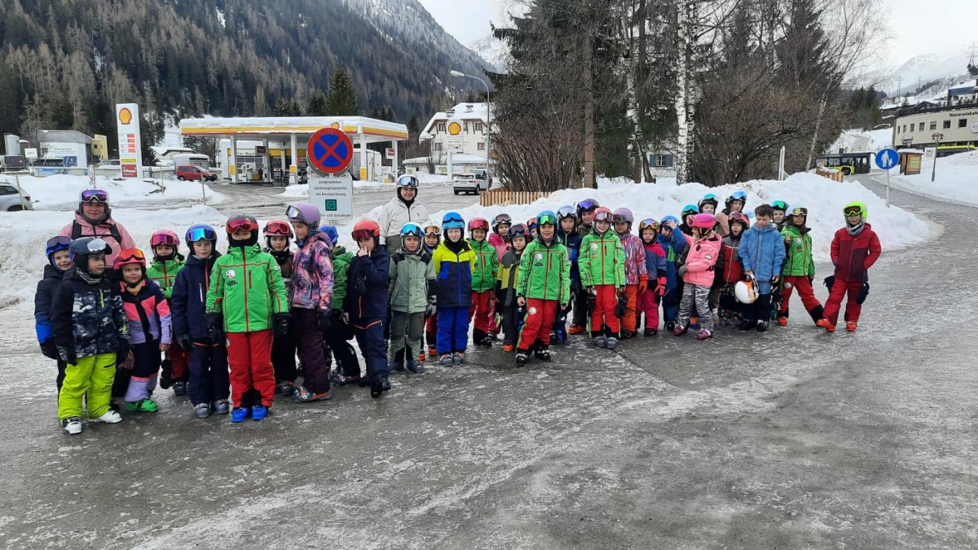 Nach dem Schwimmkurs ging es für unsere Schülerinnen und Schüler gemeinsam mit der Volksschule Pettneu auf die Pisten. Drei Tage lang begleiteten die engagierten Schilehrerinnen und Schilehrer der Schischule Arlberg die Kinder beim Skifahren.
