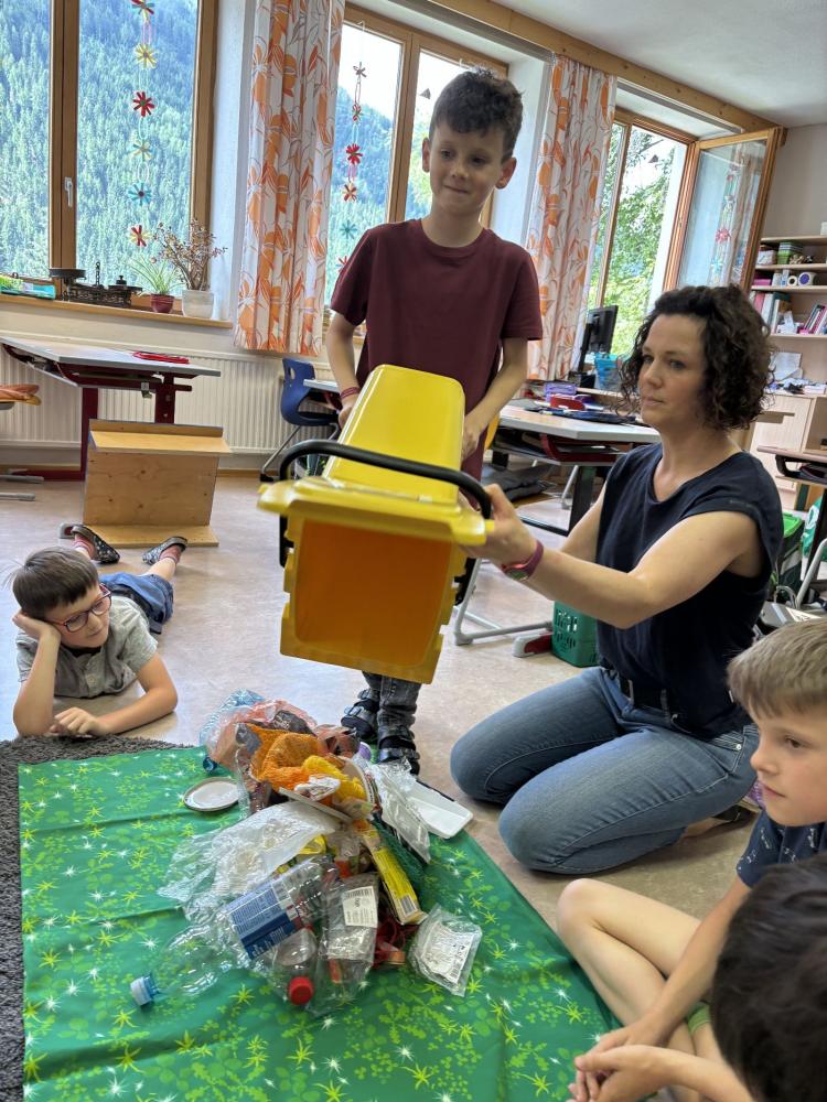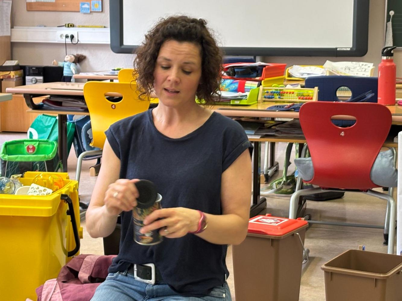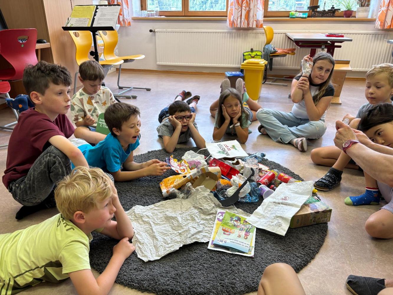 Zusätzlich bekamen die Kinder Einblicke in die Abläufe einer Müllsortieranlage anhand von Bildern und erfuhren mehr über das Pfandsystem für Getränkeflaschen und Aludosen. Die Stunden waren nicht nur informativ, sondern auch kurzweilig gestaltet – die Begeisterung und das Interesse der Kinder waren deutlich spürbar.