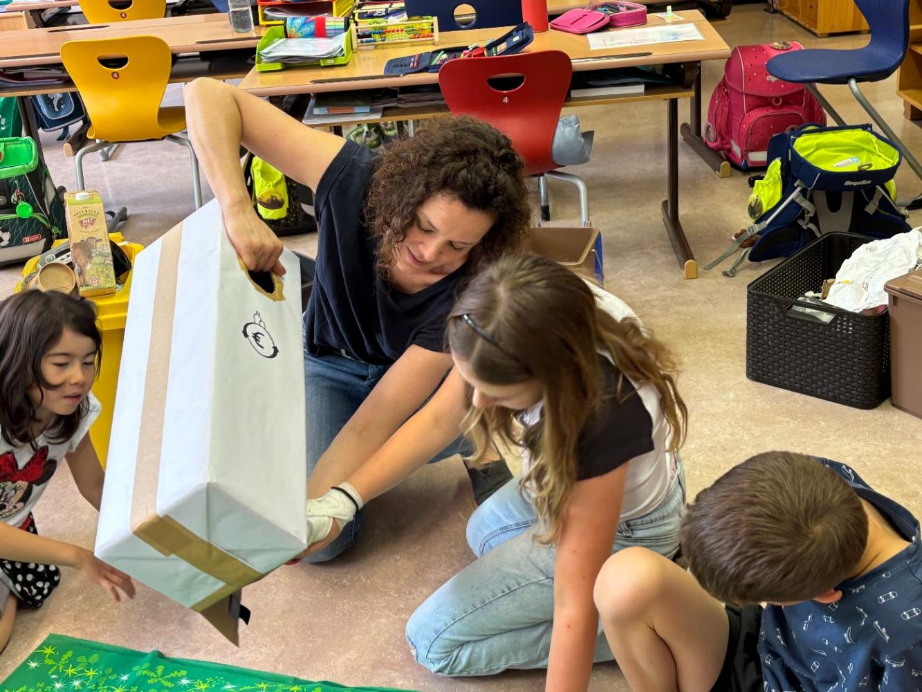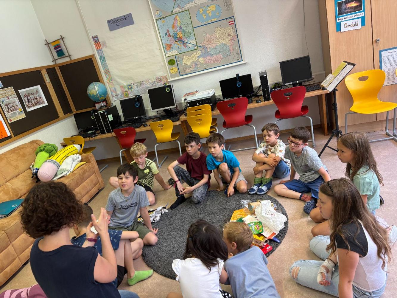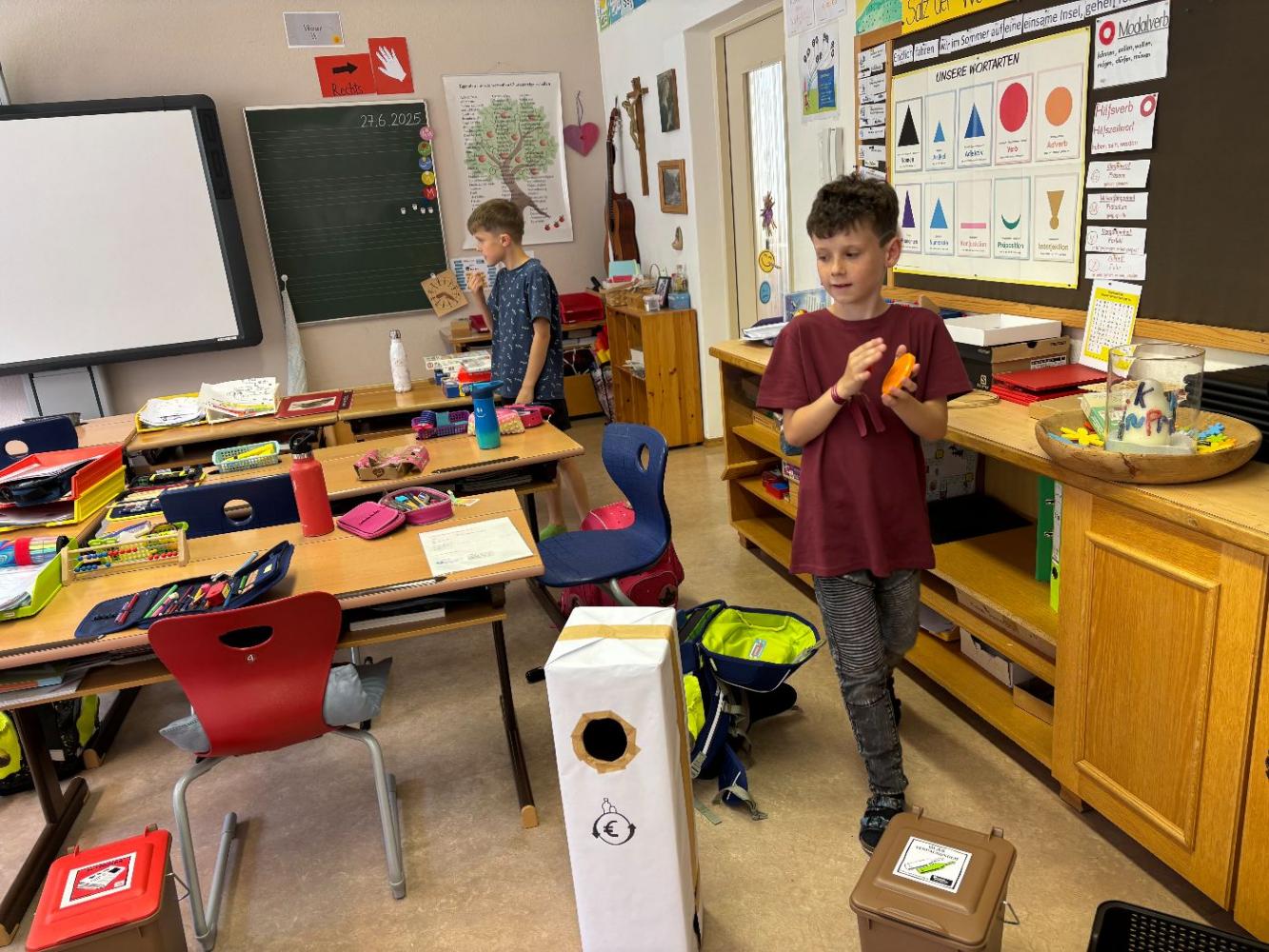 Zusätzlich bekamen die Kinder Einblicke in die Abläufe einer Müllsortieranlage anhand von Bildern und erfuhren mehr über das Pfandsystem für Getränkeflaschen und Aludosen. Die Stunden waren nicht nur informativ, sondern auch kurzweilig gestaltet – die Begeisterung und das Interesse der Kinder waren deutlich spürbar.