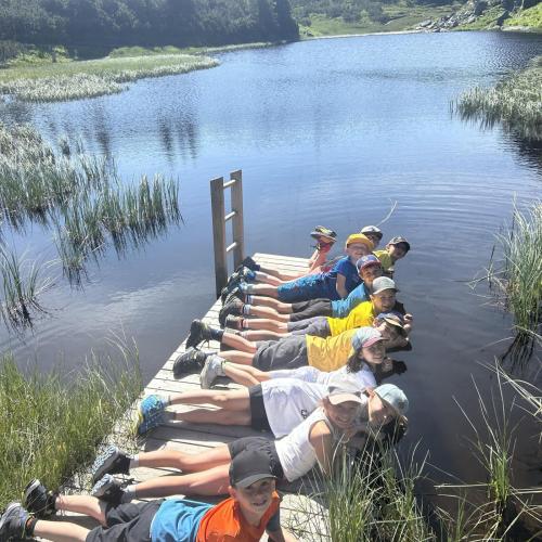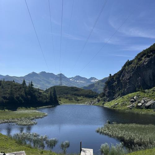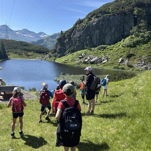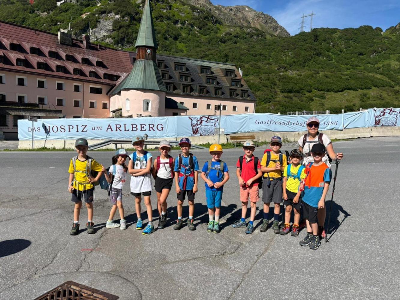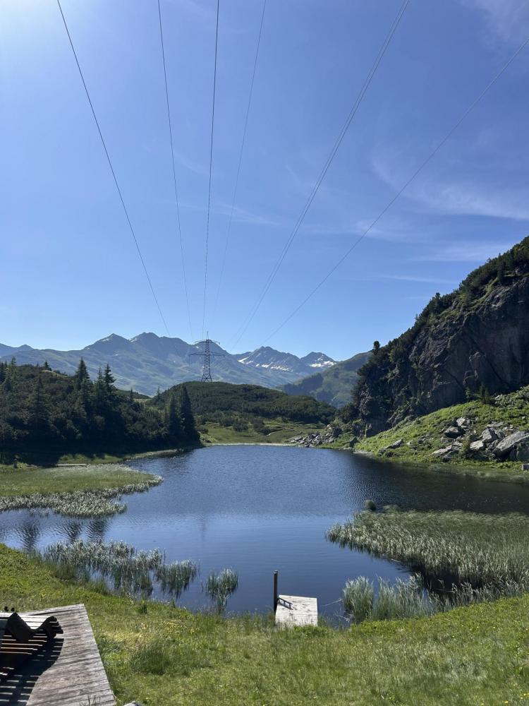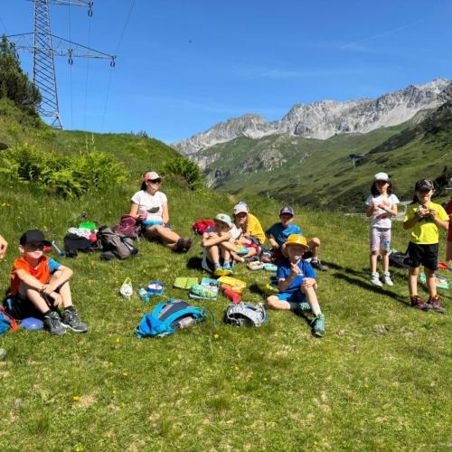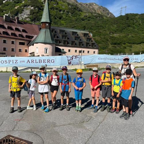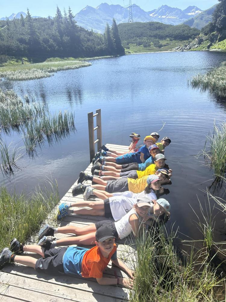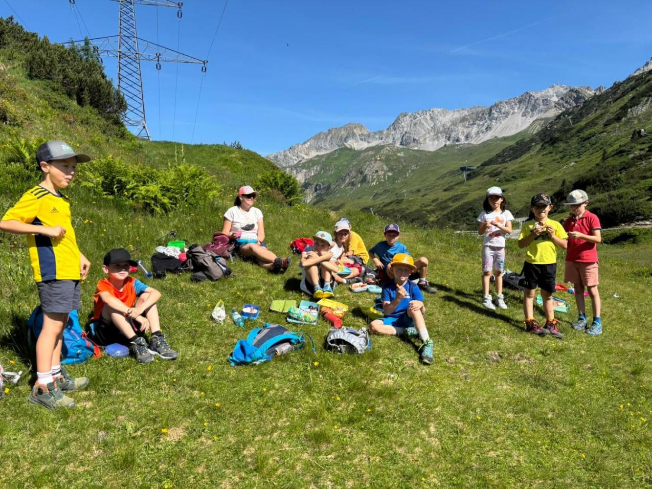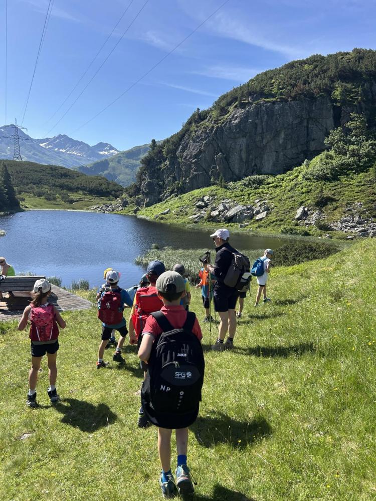 Um halb 9 machten wir uns auf den Weg. Mit dem Bus ging’s zuerst nach St. Anton und von dort weiter nach St. Christoph. Dort startete unsere Wanderung. Schon nach kurzer Zeit erreichten wir den Maiensee – ein wunderschöner Platz für unsere erste Jause und zum Spielen am Wasser.