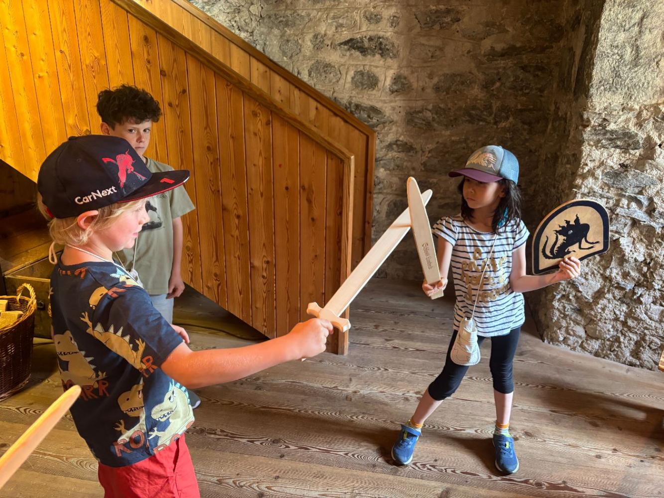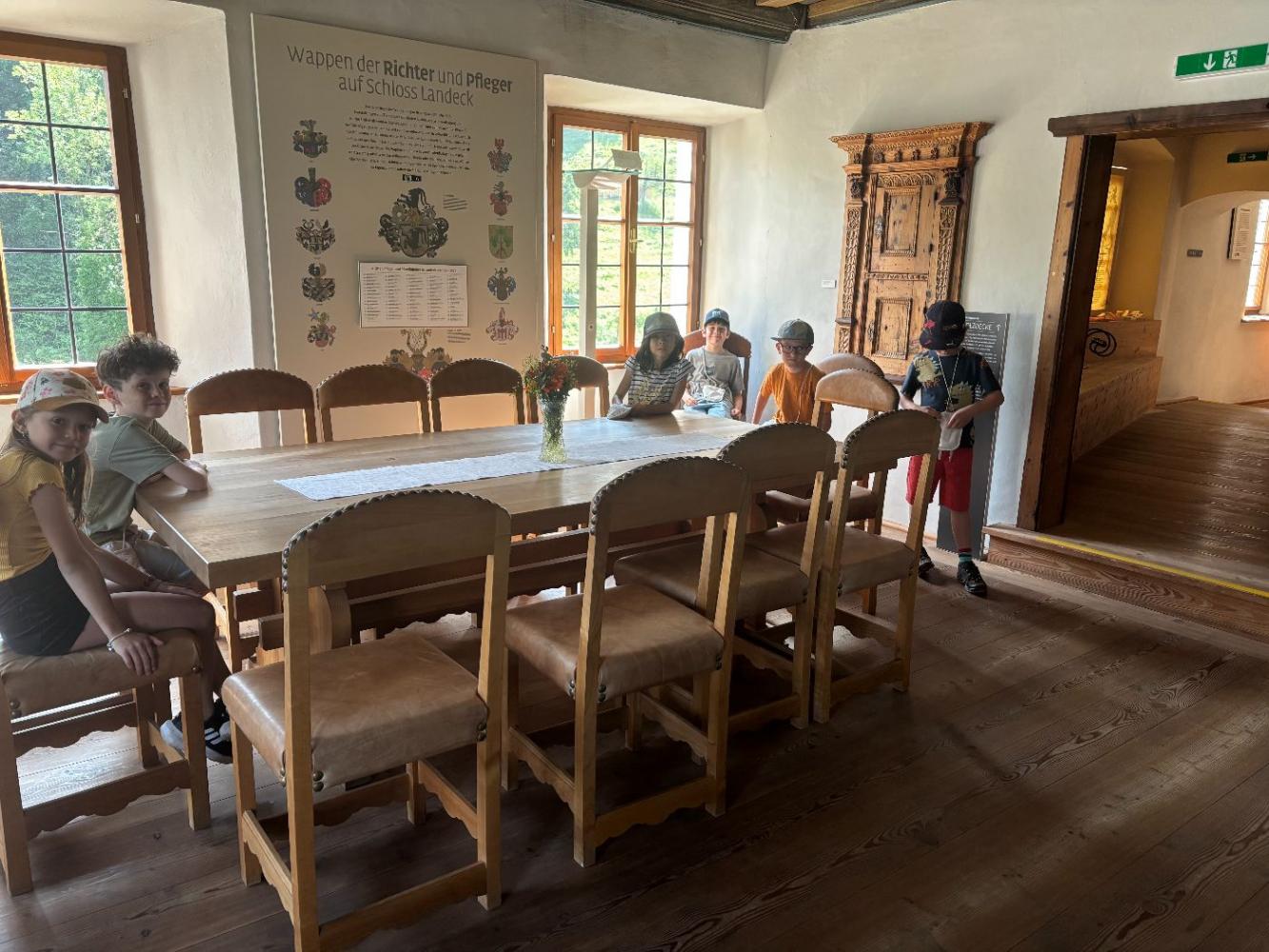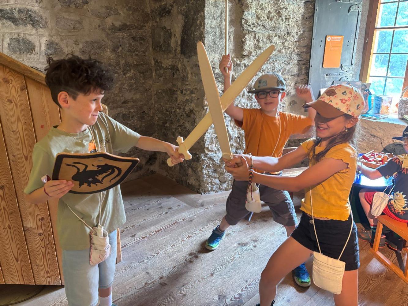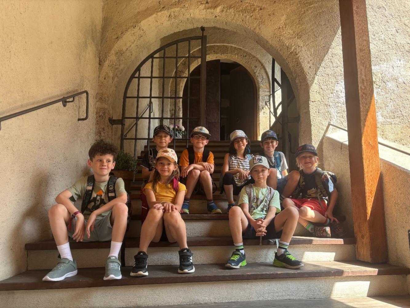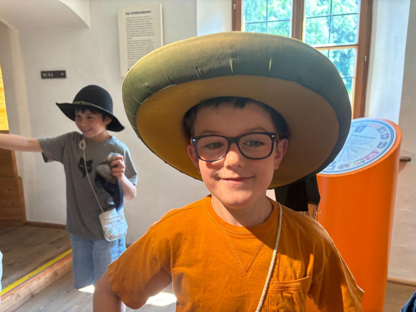 Wir wurden von Frau Johanna beim Eintritt freundlich begrüßt und jedes Kind erhielt eine kleine Leinentasche für die Schatzsuche im Schloss. In jedem Raum konnten wir Aufgaben finden, die zu lösen waren und sammelten dafür Kieselsteine im Täschchen. Wir erfuhren viele interessante Dinge über die frühere Zeit. Es gab die Sage über die Hexe Stase zu lesen, alte Werkzeuge und Waffen zu bestaunen und verschiedenste Kopfbedeckungen zu probieren. Die Aussicht vom Schlossturm war überwältigend. Die Schatzsuche war so kurzweilig, dass wir erstaunt waren, dass es schon so spät war. Am Ende erhielt jedes Kind für die gesammelten Kieselsteine einen besonders schönen Schmuckstein als Belohnung.